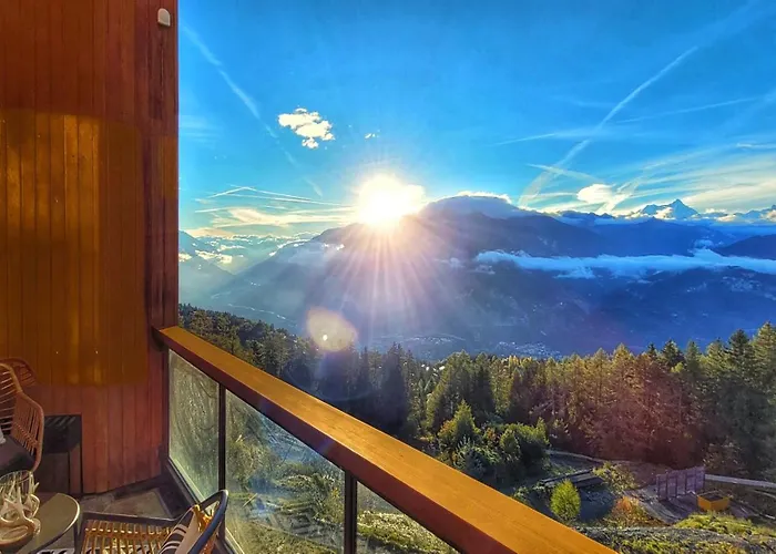 3-pokojowy L'Avantgardiste, Spacious 6 Bedrooms Duplex, Panoramic View Crans-Montana oferuje możliwość zwiedzania takich miejsc jak Klub golfowy Crans-sur-Sierre w odległości około 25 min pieszo od obiektu, oraz Centrum sztuki Fondation Pierre Arnaud - 4 km od obiektu.